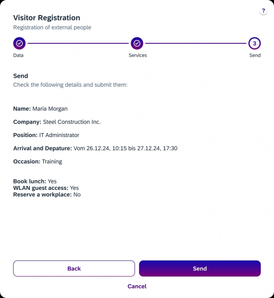 Visitor registration is a recurring process in companies. Employees often receive visits from customers, suppliers or other service providers. The registration process is often manual and unstructured, e.g. by email. Our goal was to enable this use case as a self-service for every employee in the company - at any time, even ad hoc, just before an appointment!