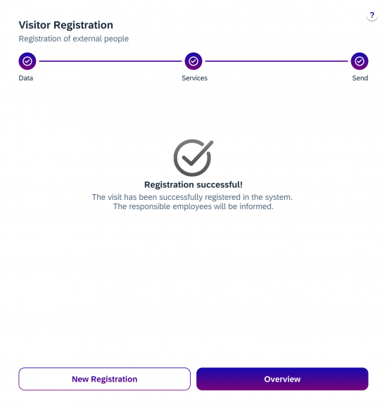 After successful completion, a confirmation appears that the registration has been successfully received and the user returns to the overview.