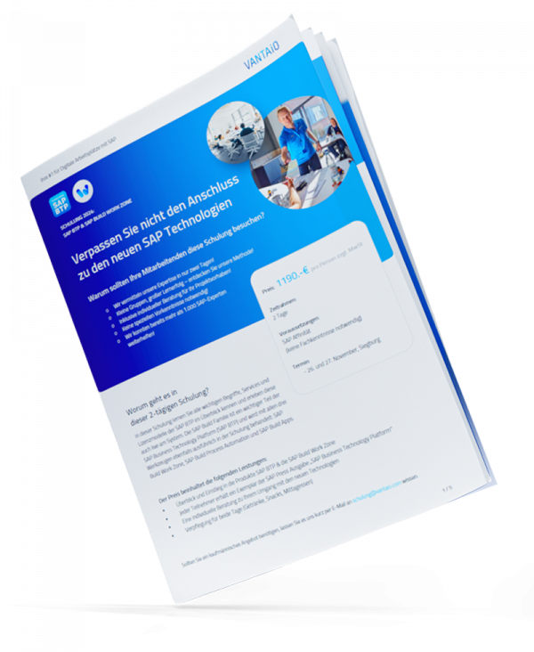 Sie interessieren sich für SAP BTP, SAP Build, den VANTAiO iNFOHUB oder ganz allgemein für das Thema Digitale Arbeitsplätze & Digitalisierung mit SAP?