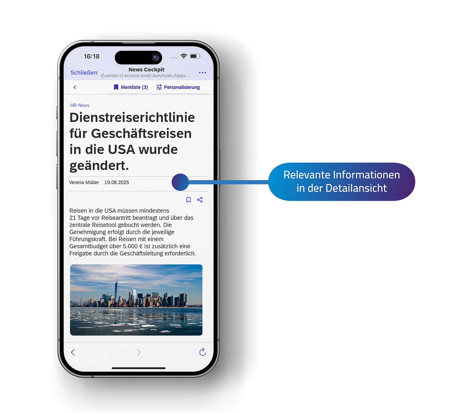 Informationen, News und Prozesse werden zielgerichtet ausgespielt und sind mit wenigen Klicks verfügbar – ohne Umwege oder Suchen.