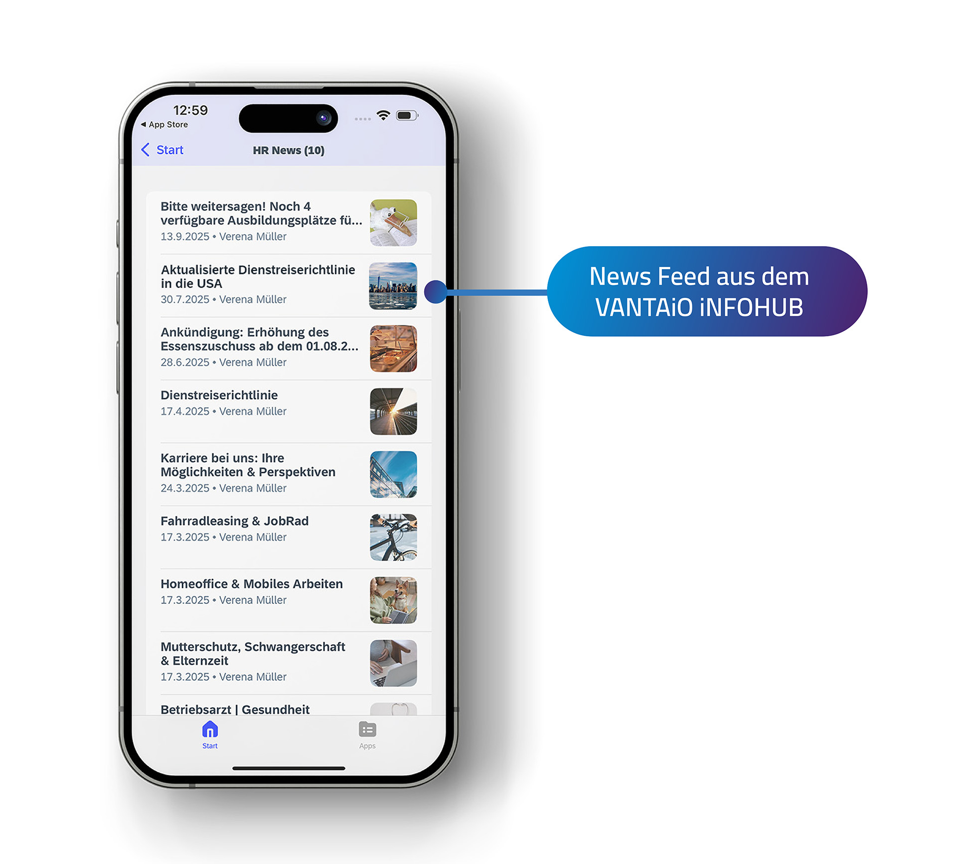 Unternehmensmachrichten, HR-Services, Anwendungen und Prozesse sind zentral an einem Ort verfügbar – sicher, mobil und personalisiert.