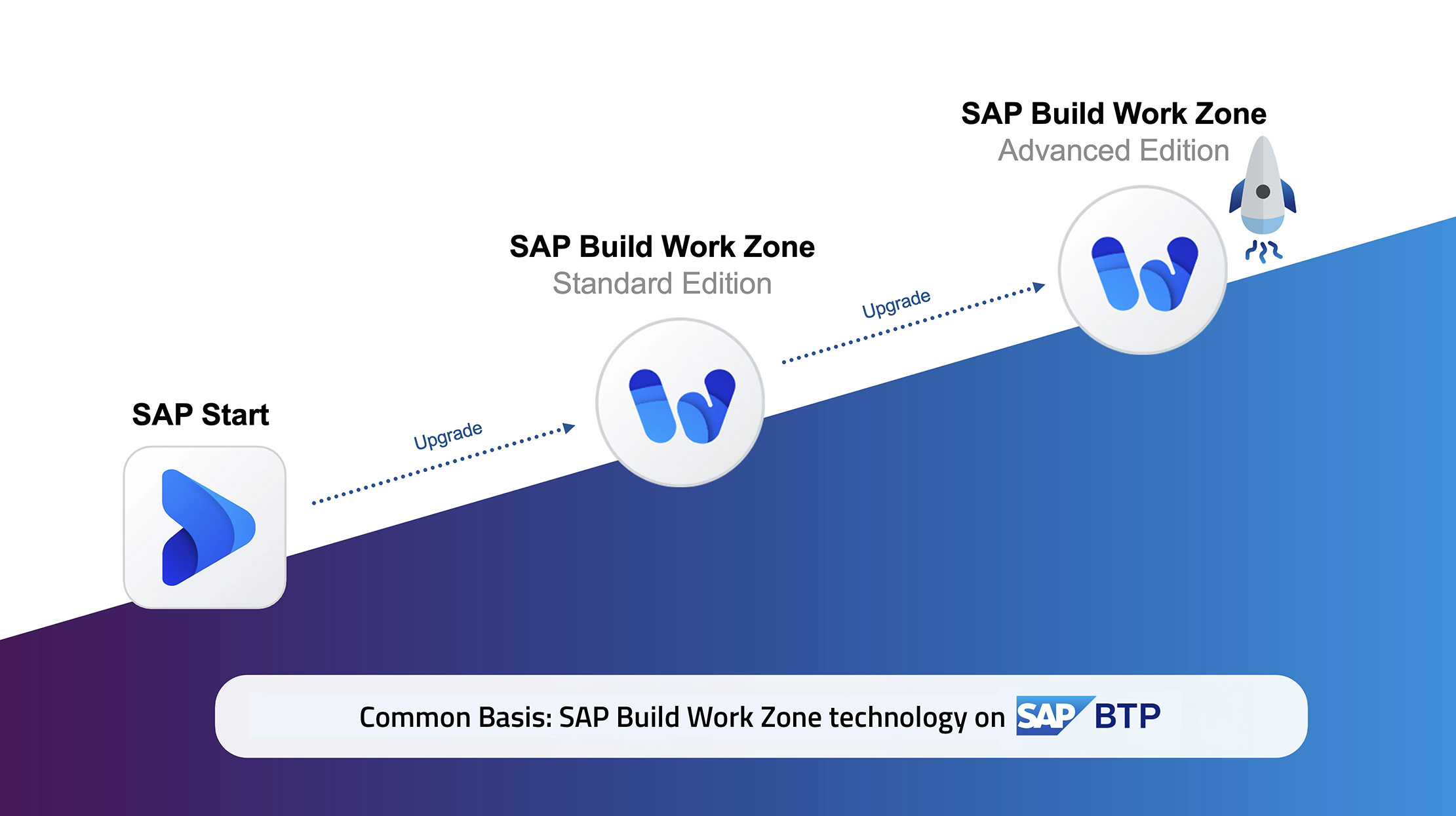 Da SAP Start auf demselben technologischen Fundament wie die Standard Edition von SAP Build Work Zone entwickelt wurde, kann auch mit wenig Aufwand auf die Standard Edition gewechselt werden.