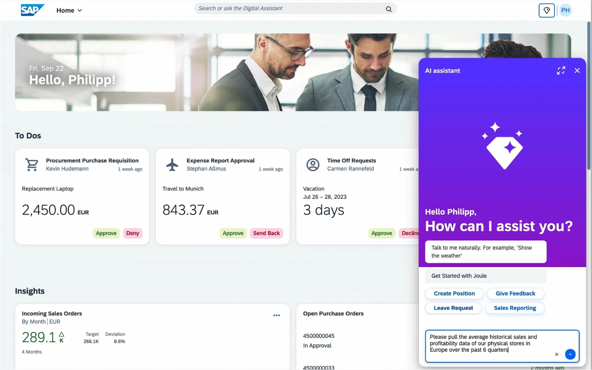 Abbildung 3: SAP Start, inklusive SAP Joule (zum Vergrößern auf das Bild klicken 🔍)