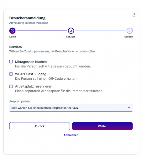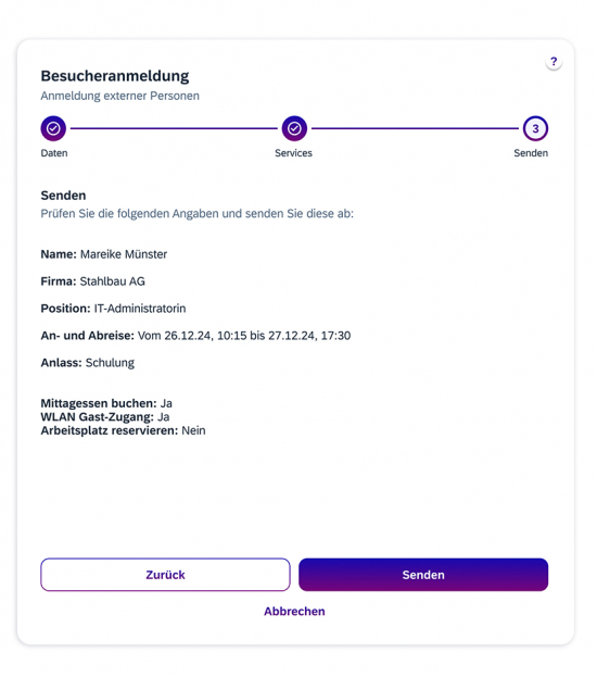 Von hier aus kann der Workflow zur Anmeldung weiterer Besucher fortgesetzt werden.
